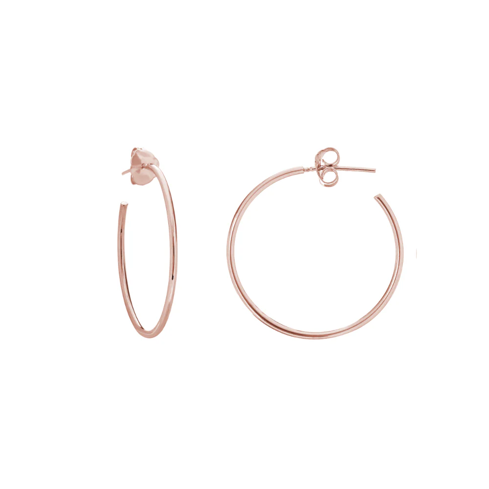 14 karat gold 25mm polished 1.2mm wide hoop with post and push style clasp.