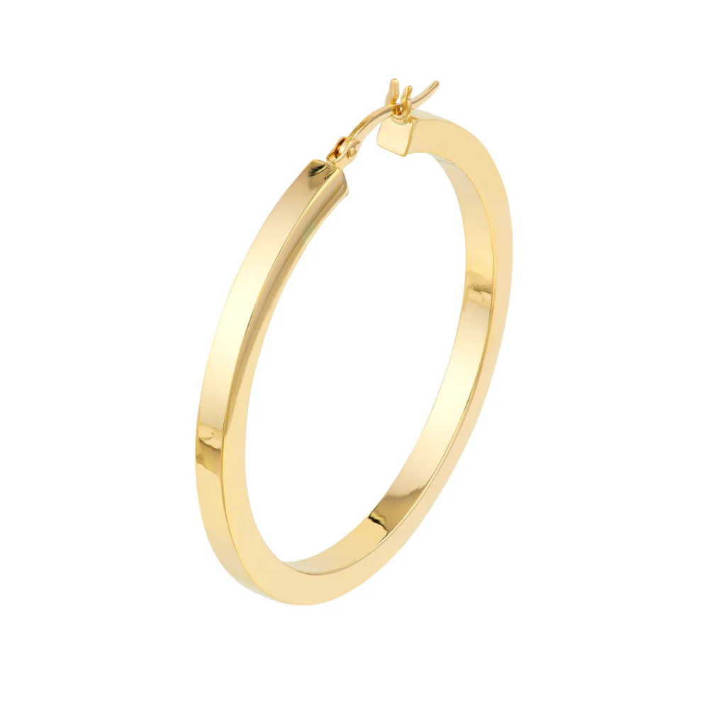 Every jewelry blogger and influencer's favorite, get your hand on these on-trend hoops. The square tube hoop earrings measure 3mm thick and 40mm in diameter.