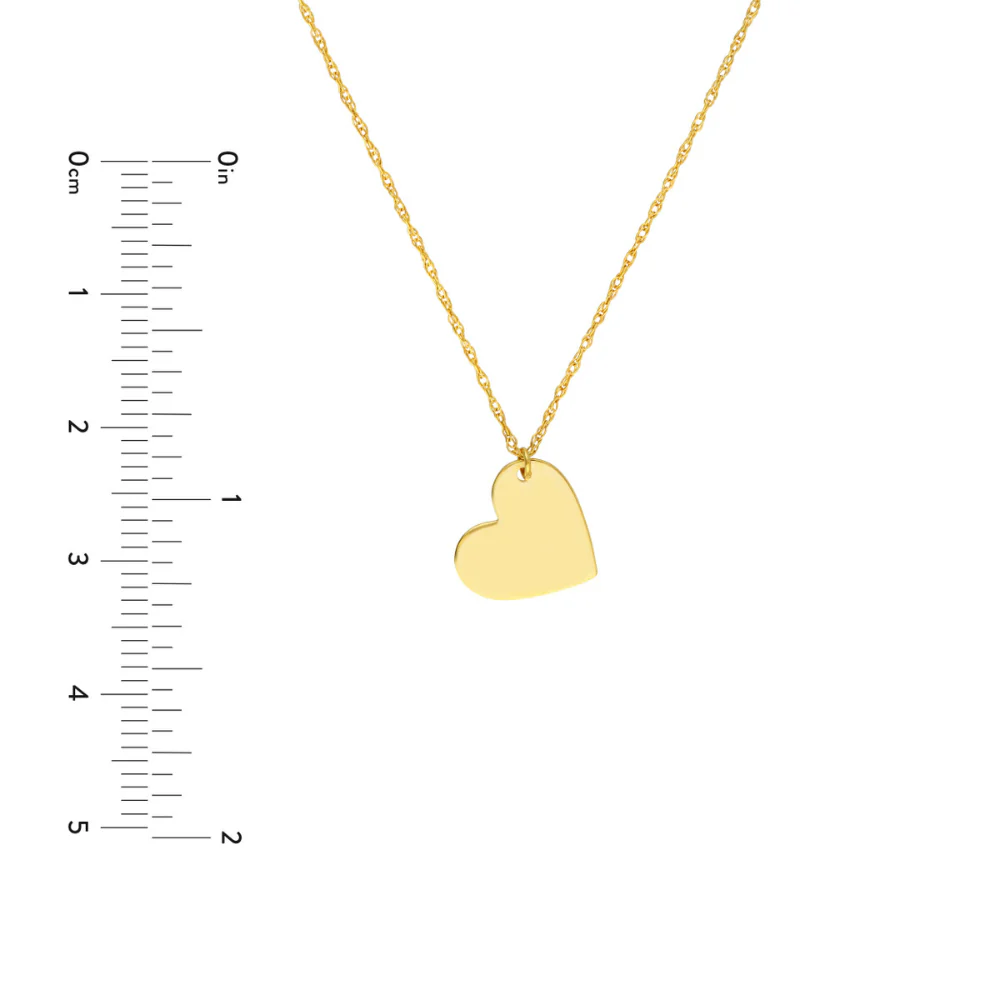 The quintessential piece for your wardrobe. This 14k yellow gold tilted heart pendant necklace pairs perfectly with any look.