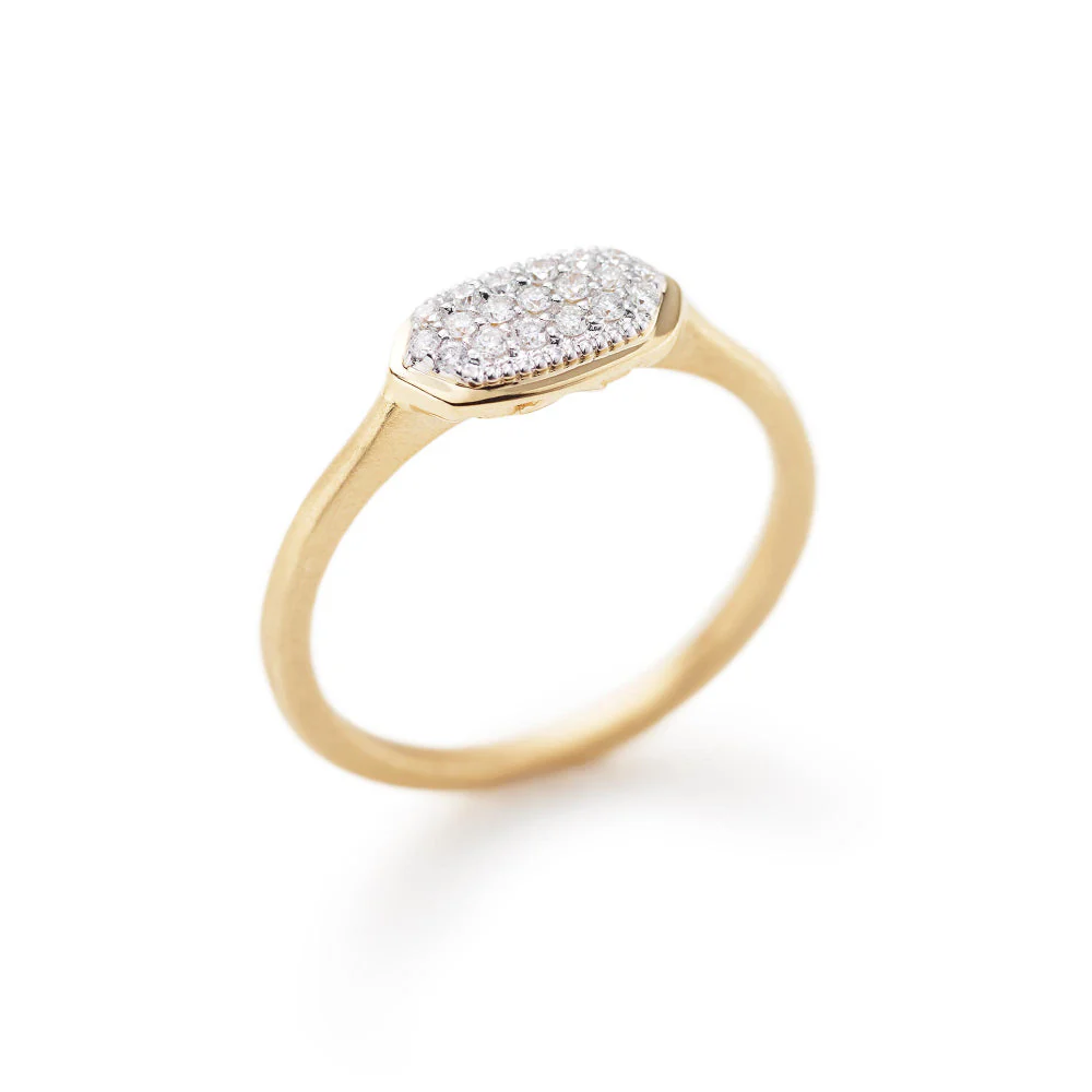 A token of timeless beauty, the Isa Ring celebrates Kendra Scotts trademark oval shape in a delicate frame of 14k Gold and custom sized Pave Diamonds.