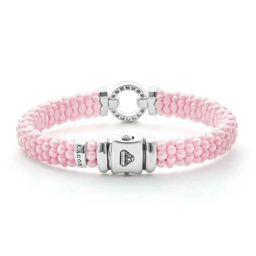 Lagos Pink Caviar Ceramic Diamond Circle Bracelet, 9mm—
