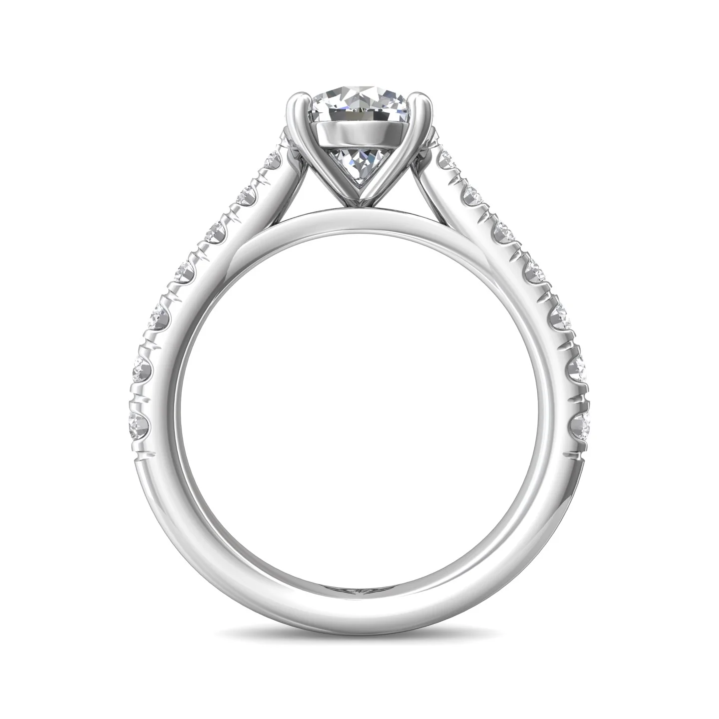Complement your center diamond perfectly with this FlyerFit engagement ring accented with cutdown micropavé diamonds half way along the band that allows your diamond to be at the center of attention.