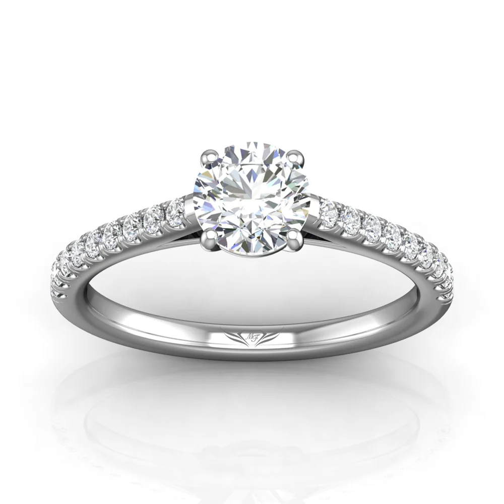 Elegant and graceful, this FlyerFit engagement ring showcases cutdown micropavé diamonds in a slim cathedral design to frame your center diamond.