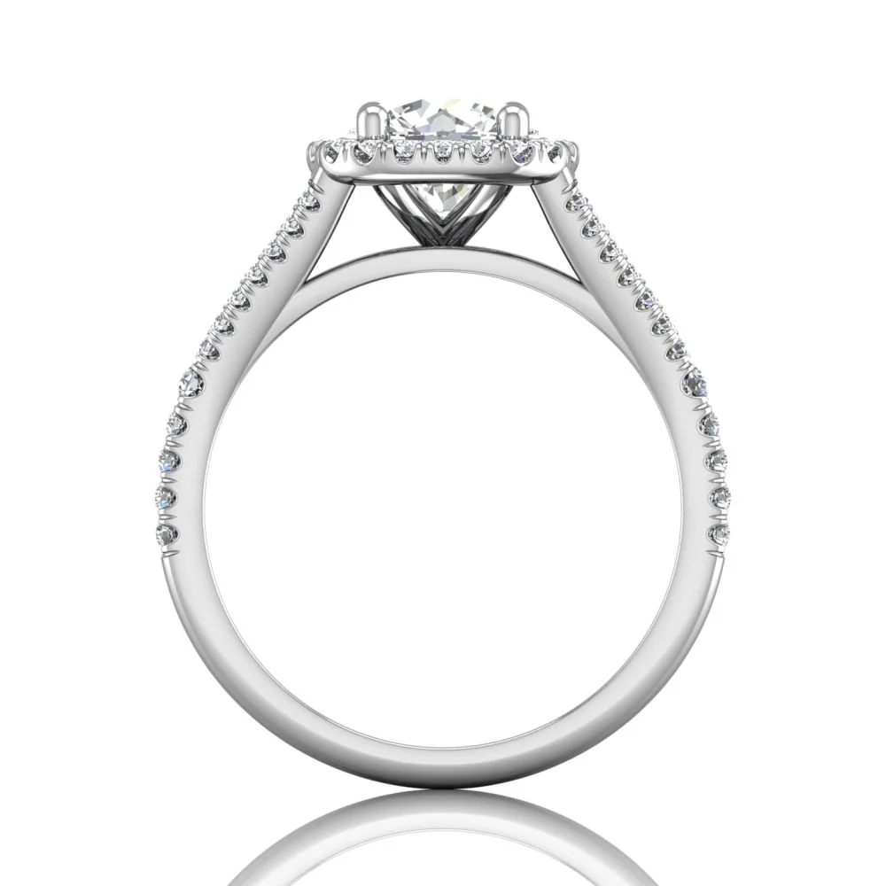 A bold and dazzling FlyerFit split shank engagement ring. Micropavé diamonds set along a split shank culminate in a glittering halo around the breathtaking center stone of your choice.
