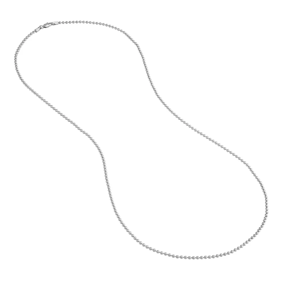 The Bead Chain is a timeless classic. Made of sterling silver, this chain will never go out of style. Measures 2mm and fastens with lobster clasp.